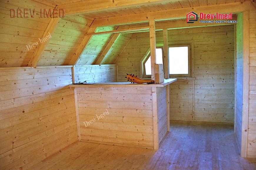 The house can be constructed in every climate zone in Poland. The house: whole made of spruce wood, founded on the concrete base. It is covered with the wood panels of the full coniferous wood and the whole is covered one time with tar paper. On the client’s request, may be additionally covered with the trapezoidal metal panels or with the metal tiles or another roofing materials. Additional insulation of the building is possible with the Gullfiber wool 50 mm and insulation of the floor with the styrofoam 50 mm blocks. The house can be enlarged by additional segments or decreased, the area of the ground floor may be freely divided into the living room and kitchen. The outside front of the house can have a balcony. There is also a possibility of installing the wood burning fireplace and the chimney-heating system.