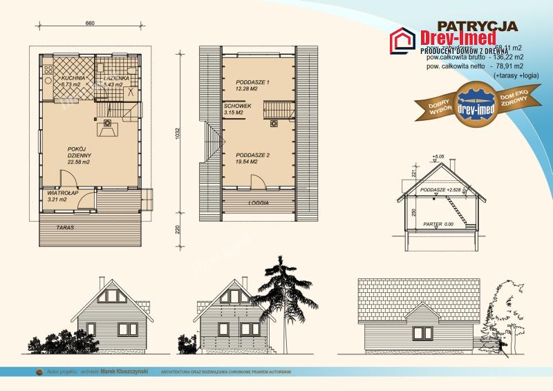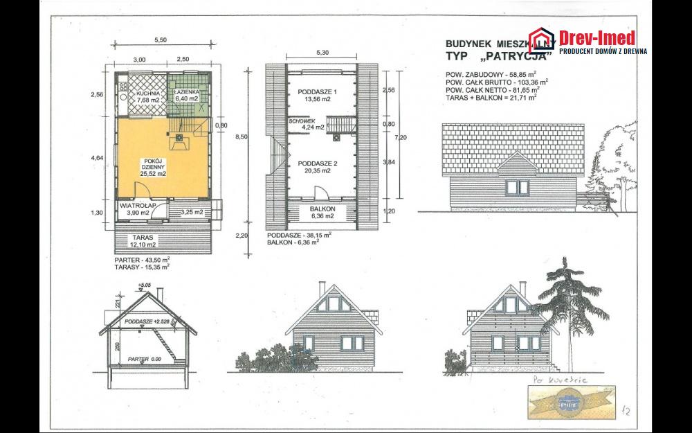 A residential house, made of spruce wood or, on request, of larch wood. Highly thermally insulated with the Gullfiber wool. For the interior walls finishing can be used plasterboard or wood. The exterior elevation made of wood or of “thermomur” [type of thermal walls system] of various thickness plus the additional thermal insulation make the house a Passive house.